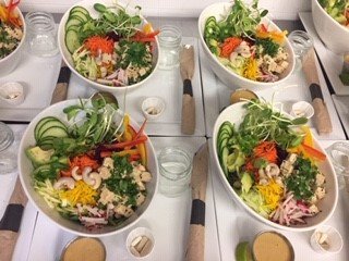 Our food is vegan, organic, and served in portioned meals, balanced both in quantity and quality. It is made from scratch, without preservatives, sugar, dairy, and gluten. We use a lot of live (unprocessed, raw) food, for its cleansing and cellular nourishment properties.